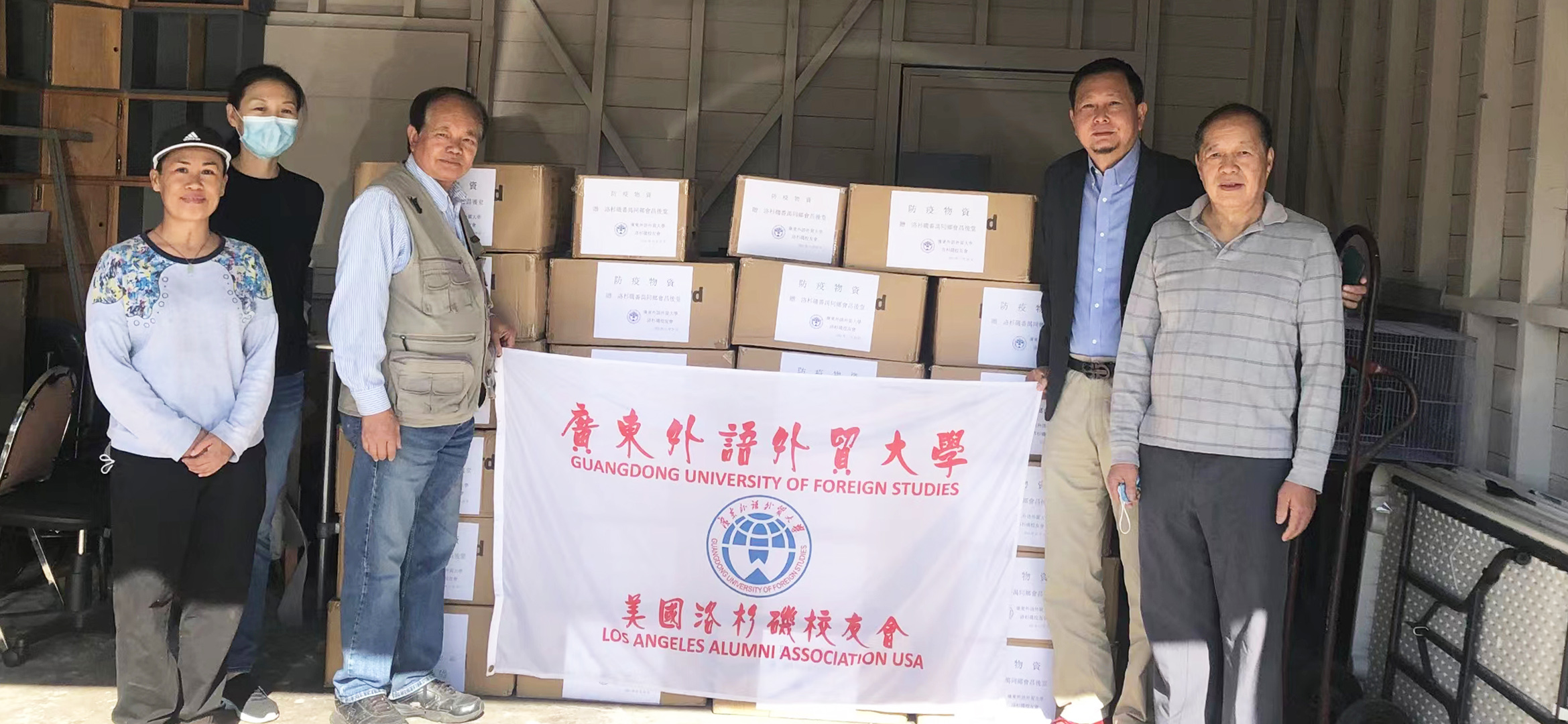 广东外语外贸大学洛杉矶校友会向美国洛杉矶番禺同乡会昌后堂赠送防疫物资