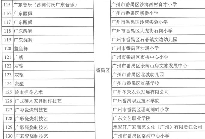 日前,广州市文化广电旅游局公布了广州市非物质文化遗产传承基地(2024—2026年)名单,我区沙湾西村育才小学等21个单位成功入选。