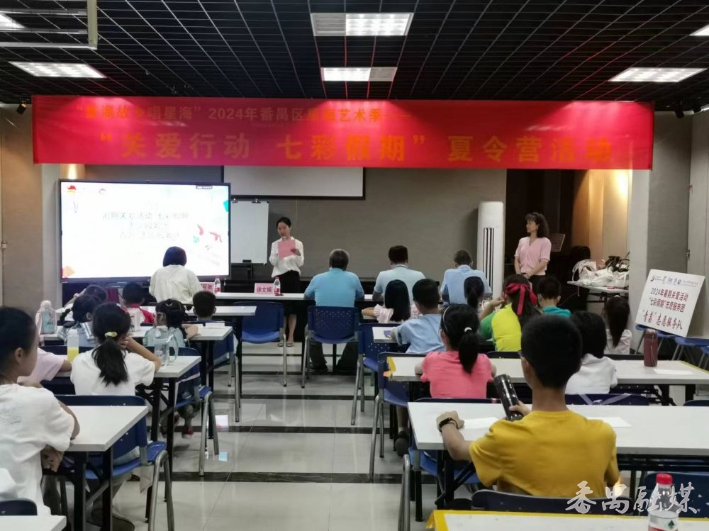 7月15日上午,“星海故乡唱星海”2024年番禺区星海艺术季“关爱行动·七彩假期”夏令营正式开营。