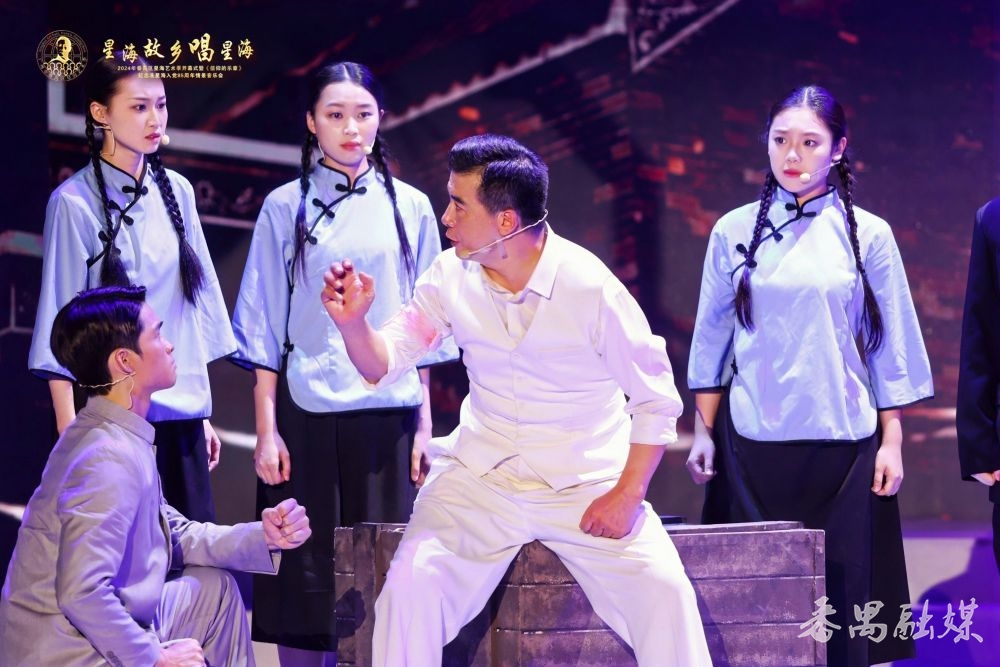 开幕式后,来自广东省话剧院、广州话剧艺术中心的专业演员,以及星海音乐学院、GBA教师室内合唱团、番禺星海合唱团专业师生团队共同创作的《信仰的乐章》纪念冼星海入党85周年情景音乐会在现场精彩上演。据悉,本次情景音乐会邀请到广东省话剧院国家二级导演朱云峰担任总导演,广东省话剧院国家二级编剧吴楠担任编剧,国家广电总局人才库高级编剧许尔加担任音乐总监。