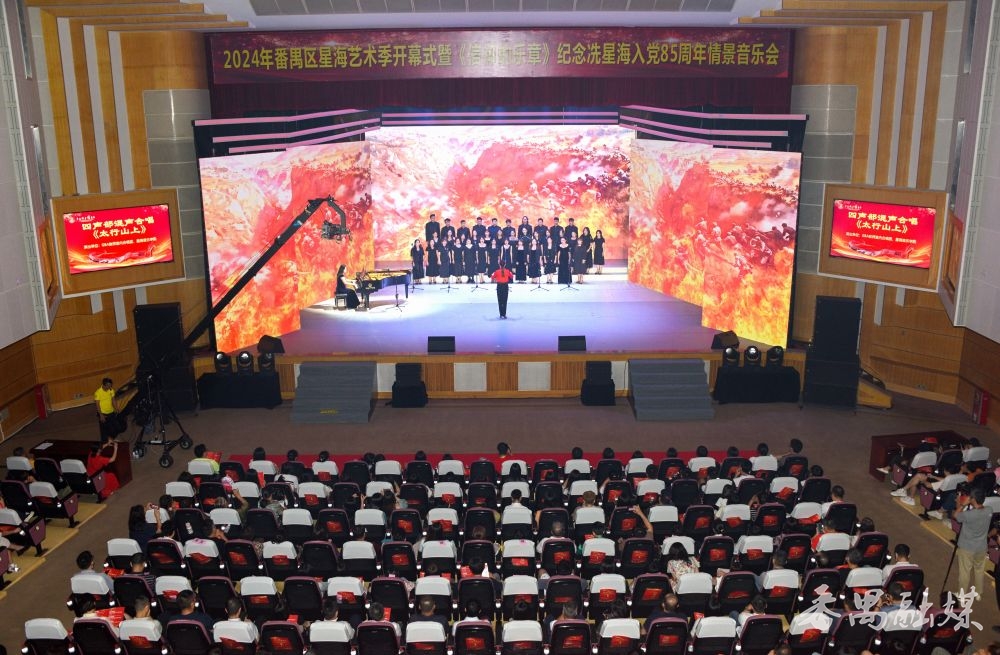 6月25日晚,“星海故乡唱星海”——2024年番禺区星海艺术季开幕式暨《信仰的乐章》纪念冼星海入党85周年情景音乐会在番禺会议中心大会堂举行,标志着为期5个月的2024年番禺星海艺术季系列活动正式拉开帷幕。广州市文化馆(广州市非遗保护中心)党支部书记牟辽川,番禺区委常委、宣传部部长莫蕾,副区长杨少华等出席开幕式并观看演出。活动由番禺区委宣传部、番禺区文化广电旅游体育局、番禺区文学艺术界联合会主办,番禺区文化馆、番禺区融媒体中心承办。
