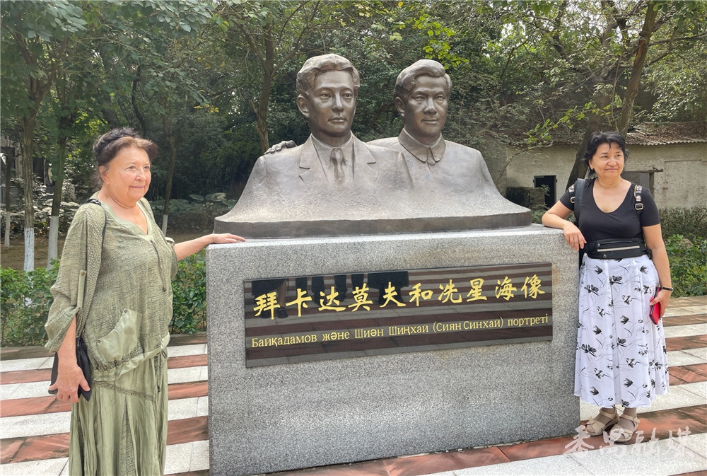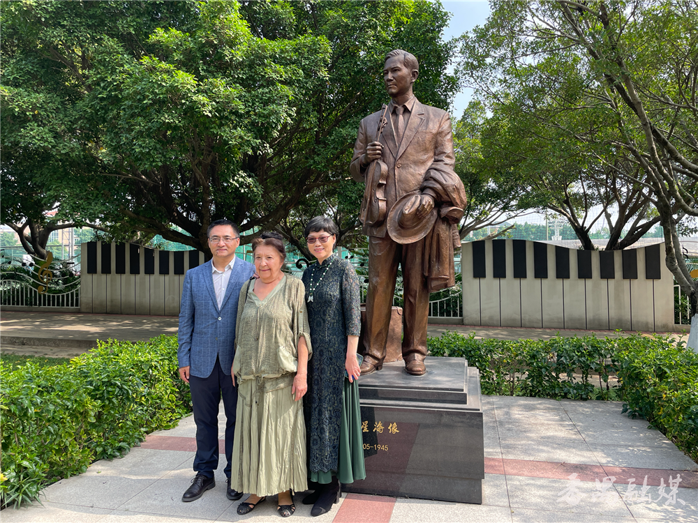 拜卡达莫娃在冼星海铜像前合影