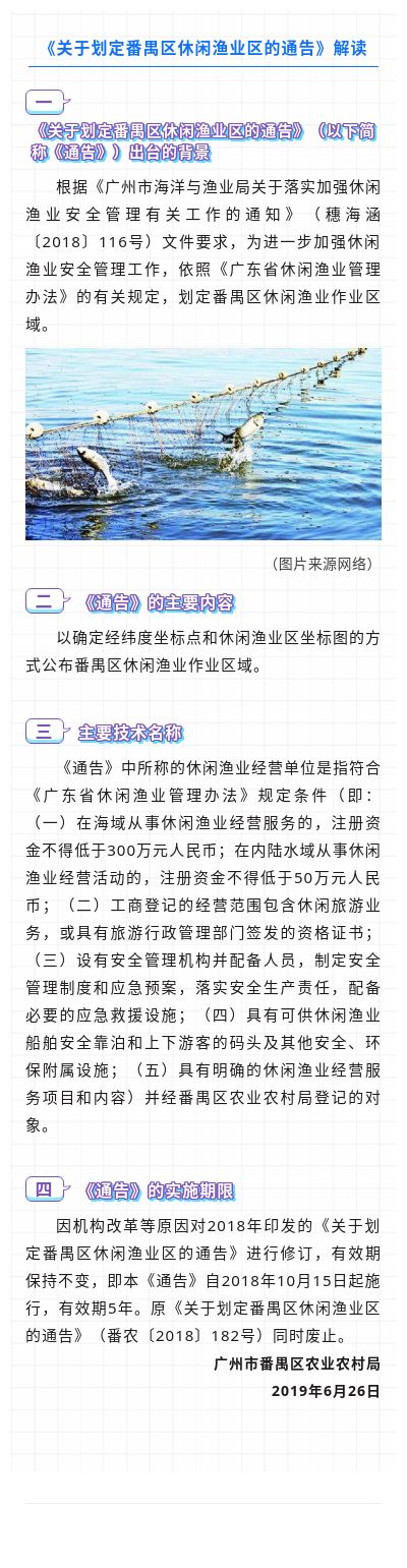 广州市番禺区农业农村局关于印发《关于划定番禺区休闲渔业区的通告》的通知