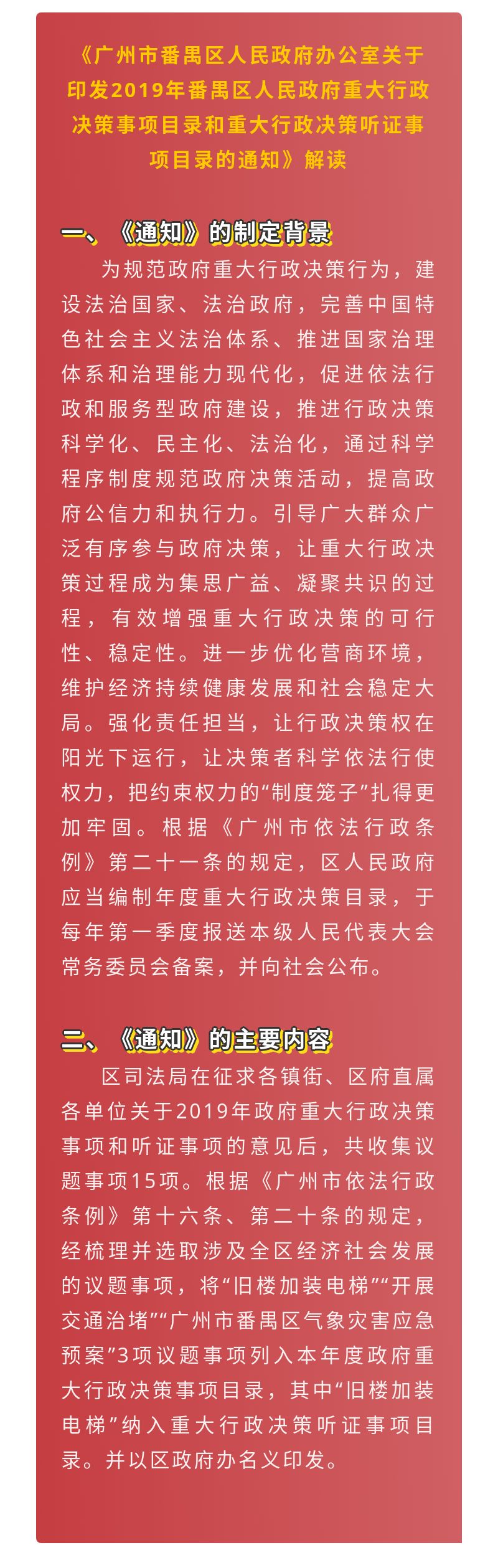 《广州市番禺区人民政府办公室关于印发2019年番禺区人民政府重大行政决策事项目录和重大行政决策听证事项目录的通知》解读