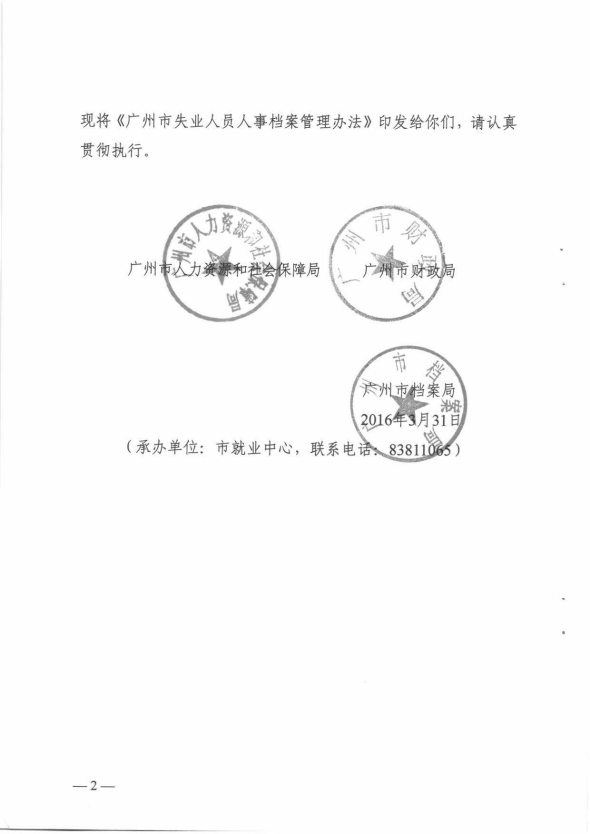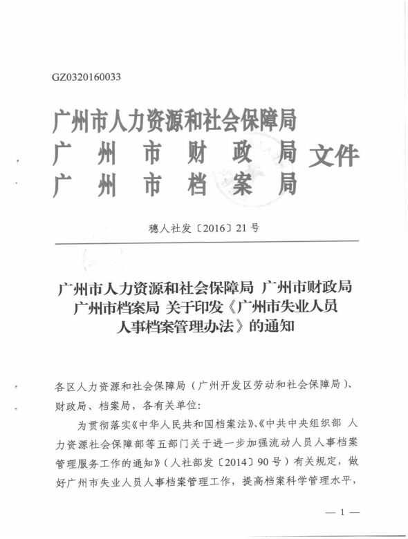 附件:广州市人力资源社会保障局广州市财政局广州市档案局关于印发《广州市失业人员人事档案管理办法》的通
